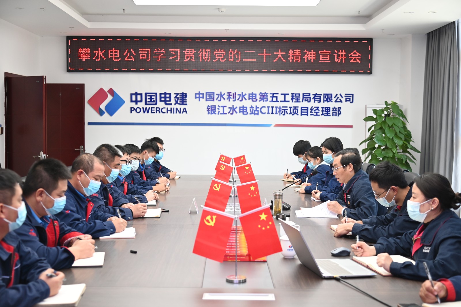 根據川投集團黨委、川投能源黨委有關要求和攀水電公司黨總支工作安排,為進一步學習宣傳貫徹黨的二十大精神,激勵銀江水電站參建單位全面學習、全面把握、全面落實黨的二十大精神,12月1日上午,川投能源副總經理、攀水電公司黨總支書記、董事長、攀新能源公司董事長徐孝剛到聯建支部水電五局銀江項目黨支部進行黨的二十精神專題宣講。水電五局銀江項目黨支部全體黨員、入黨積極分子、職工代表共計20余人參加此次宣講會。