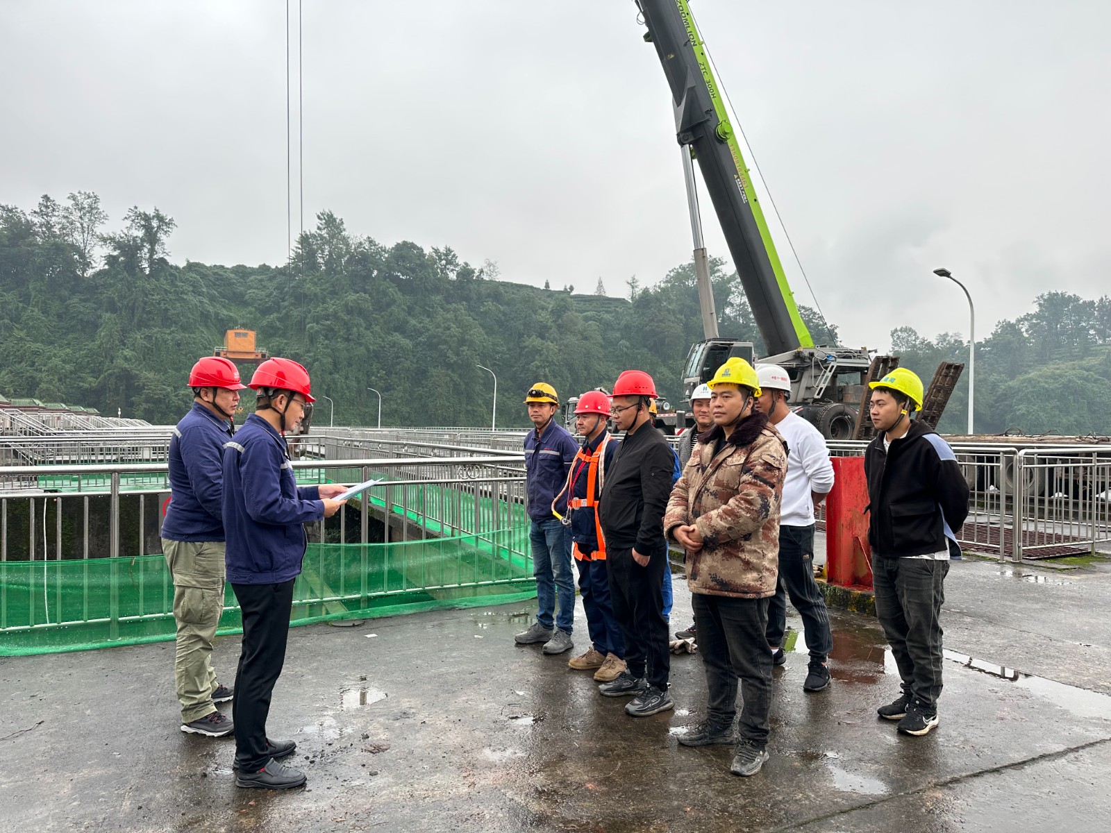 檢修期間,1號、8號沖砂泄洪閘門液壓缸拆出吊運返廠大修是高奉山電廠的重要節點任務,為確保液壓缸拆出吊運安全平穩進行,進一步提高檢修質量,電廠對作業人員進行液壓缸起吊安全技術交底。作業時,電廠各級管理人員、安全監督人員組織檢修人員就起吊油缸工作的準備情況、應急預案、各項安全措施和技術措施的落實情況進行了仔細核實,對各個關鍵點進行再次強調。