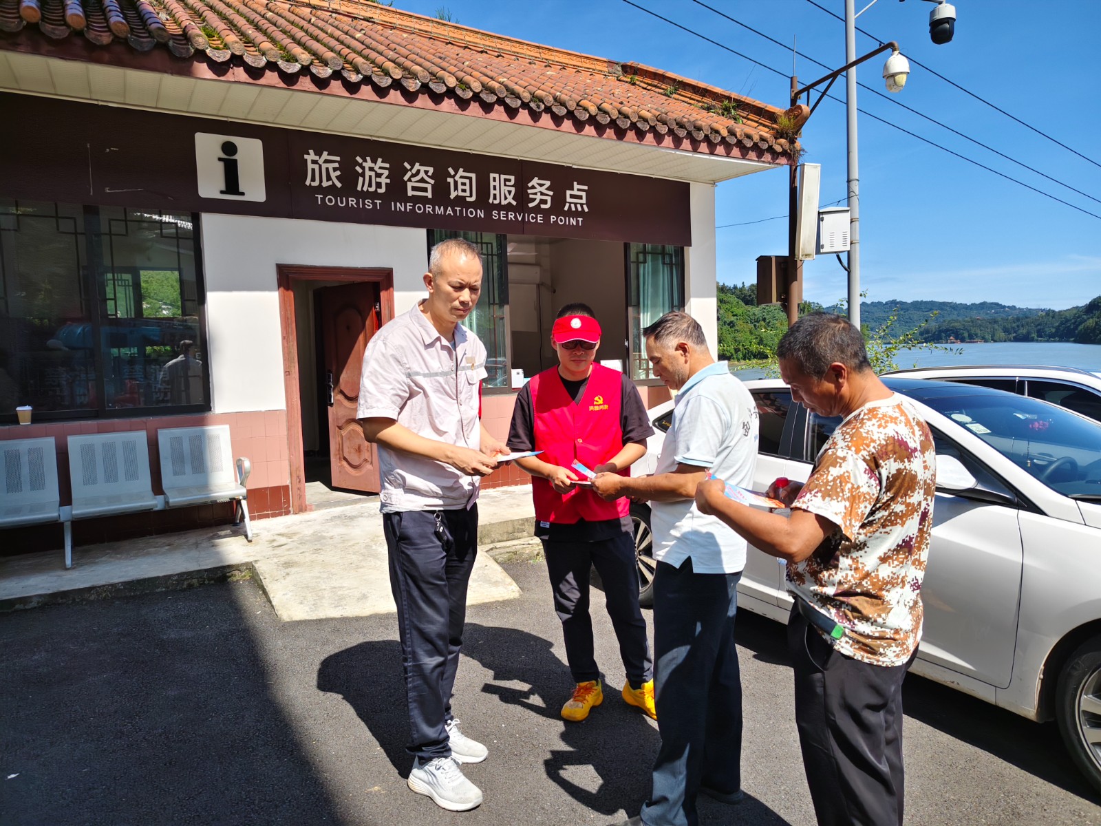 活動現場,志愿者耐心地為游客提供景區景點、游覽路線、交通信息等咨詢服務,幫助游客規劃合理的游覽行程,確保游客能夠順利、愉快地游覽景區。在景區停車場區域,協助景區工作人員維持交通秩序,引導游客有序停車,保障了停車場的暢通和游客的安全。黨員志愿者們還積極開展《中華人民共和國反有組織犯罪法》宣傳活動。向他們發放宣傳手冊,提高游客對有組織犯罪的認識和防范意識,引導廣大游客自覺遵守法律法規,共同維護社會和諧穩定。