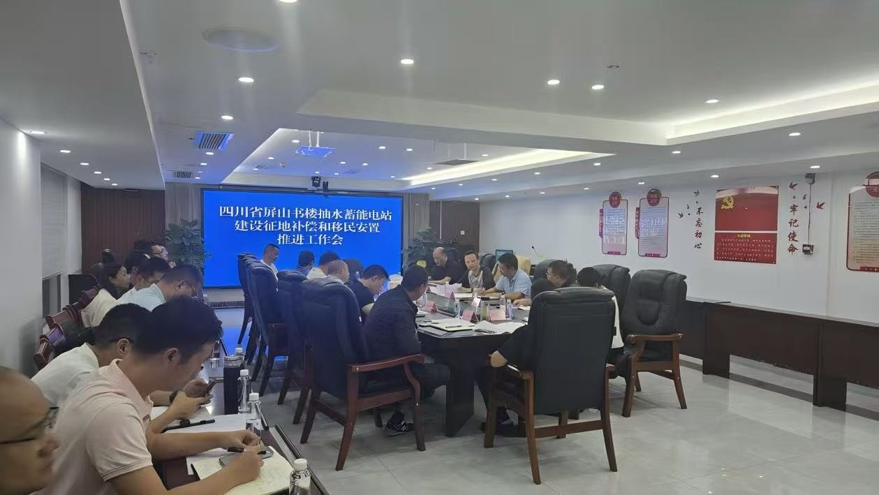 10月16日,四川屏山書樓抽水蓄能電站建設征地補償和移民安置推進工作會在屏山縣水利局召開。會議由縣水利局副局長胡浩主持,屏山縣人大常委會副主任肖興屏、屏山抽蓄公司總經理蘇鵬,中國電建成都院抽蓄院生產管理部主任、屏山抽蓄項目經理索慧敏出席會議,屏山縣抽蓄項目建設專班相關部門、書樓鎮政府、屏山抽蓄公司、中國電建成都院等相關單位代表參會。