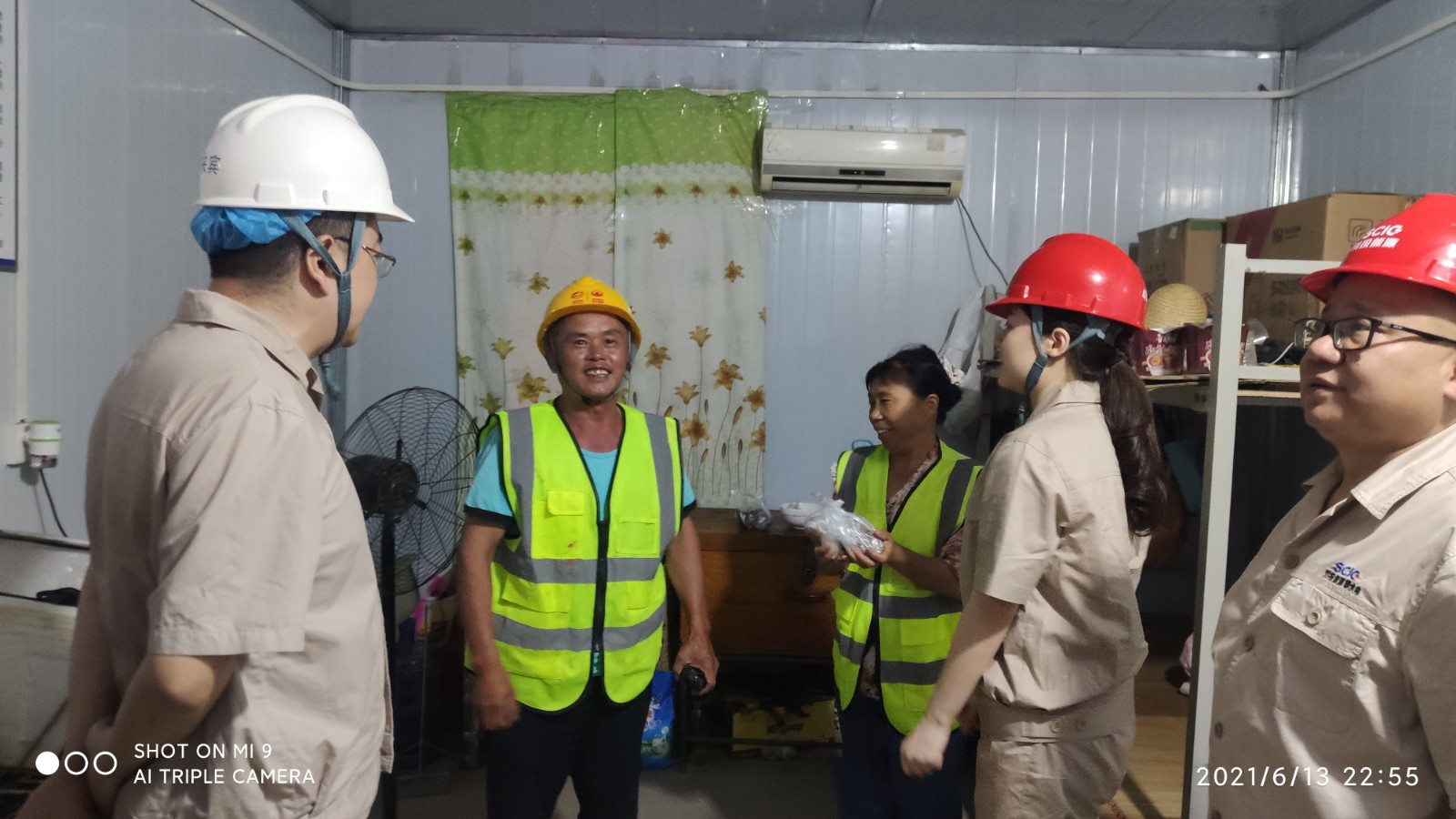 6月13日端午節前夕深夜,公司值班領導、黨總支委員、董事會秘書、工會主席鄧勇,總經理助理唐伽帶領值班人員,對銀江水電站工地現場防洪度汛值班點位及施工現場進行了檢查;公司志愿者服務隊共計10余人對節日期間堅守在銀江水電站工地夜間施工的一線人員進行了慰問。