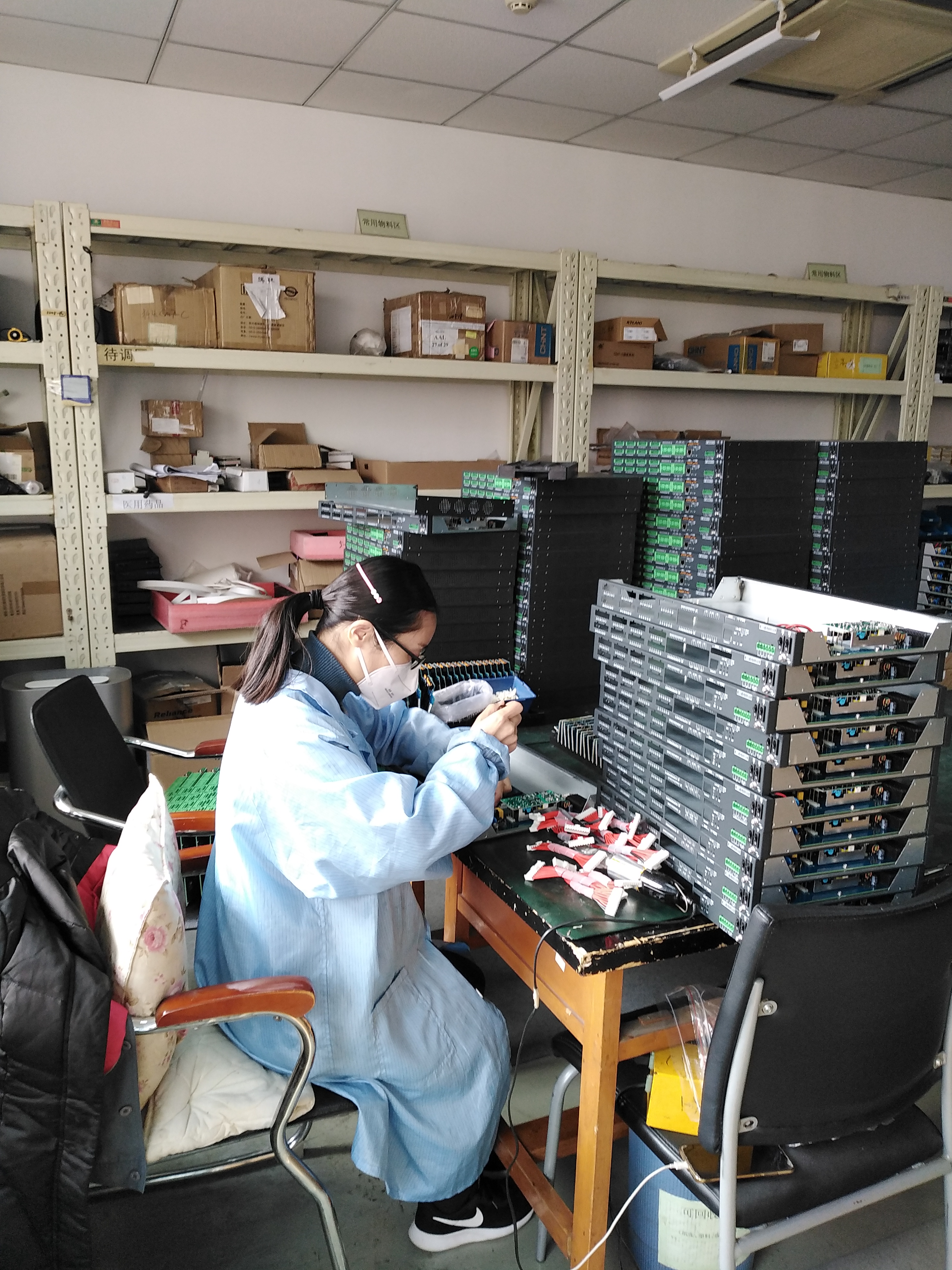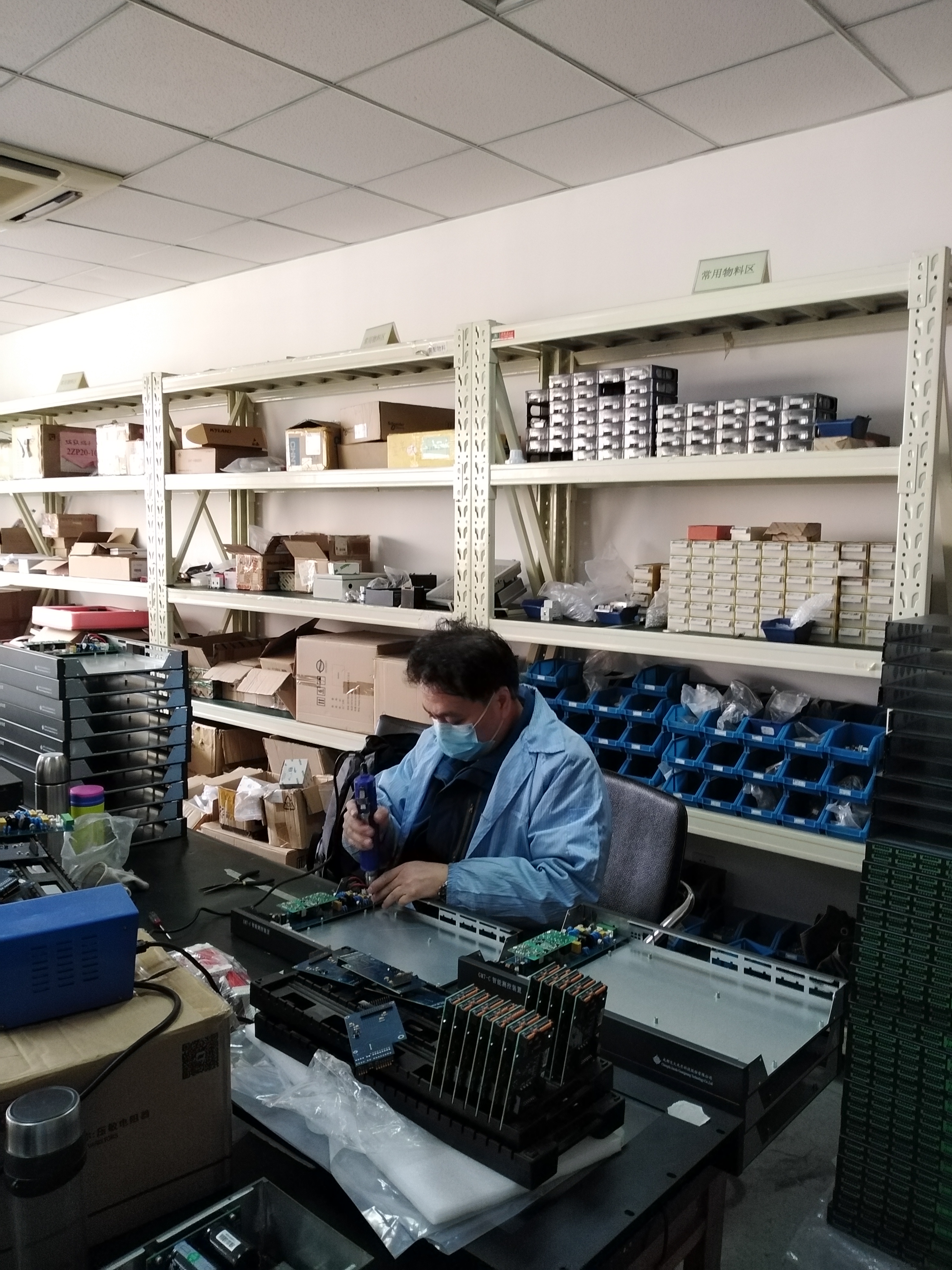 為保證各項目進度需要,公司生產供應部作為交大光芒復工復產產品物資戰線的主陣地,擔負著提供國鐵和城市軌道供電監控系統核心產品的生產重任。以夏佐平為負責人的生產調試組,面對持續緊張的產品需求,大家沒有彷徨猶豫、沒有恐懼退縮,主動要求第一批復工。團隊成員一個個身穿厚重的防護服,規范戴好口罩,仔細完成消殺措施,心無旁騖地堅守在工作崗位。疫情襲來,平日里車水馬龍的工作園區現在顯得是空曠寂靜,熱鬧的辦公室也是人員寥寥無幾,面對1500套GM7-C裝置的生產任務,夏佐平和生產供應部的6位同仁們錨定一顆恒心,付諸百般努力,誓要按節點完成生產交付,為鐵路運輸一線和疫情防控提供可靠的裝備,模板調試、程序灌裝、機電裝配、整機測試、高溫老化……,一道道精密工序在團隊成員們的手里執行歸位,團隊協作秩序井然,確保雅萬、合安九等重點項目產品的順利按約交付。生產線上的每一根接線,每一次焊接,每一顆螺絲緊固,每一次調式數據測試,是他們對于疫情防控阻擊戰和企業生產經營保衛戰最質樸的詮釋。
